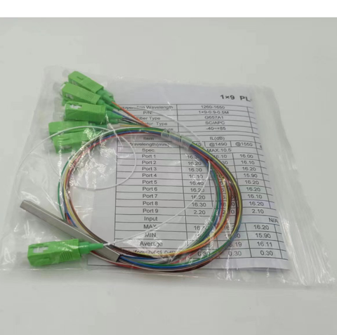 工厂价格1x8 SC APC迷你钢管型0.9毫米光纤PLC分路器1x2 1x4 1x16 1x32 1x64 PLC分路器